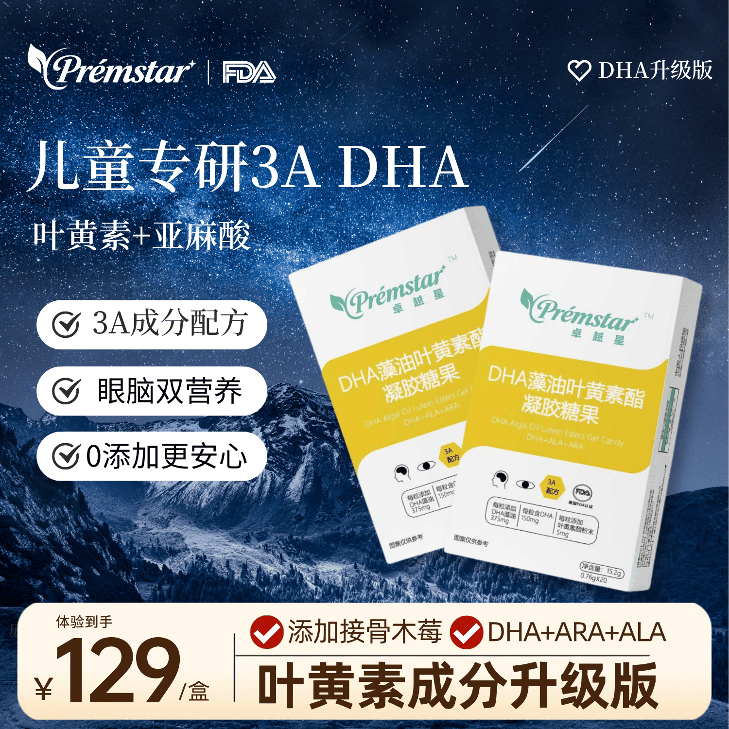 卓越星DHA藻油叶黄素小金鱼3A成分胶囊150mg儿童学习专注