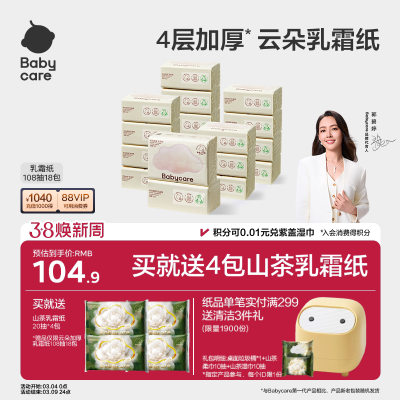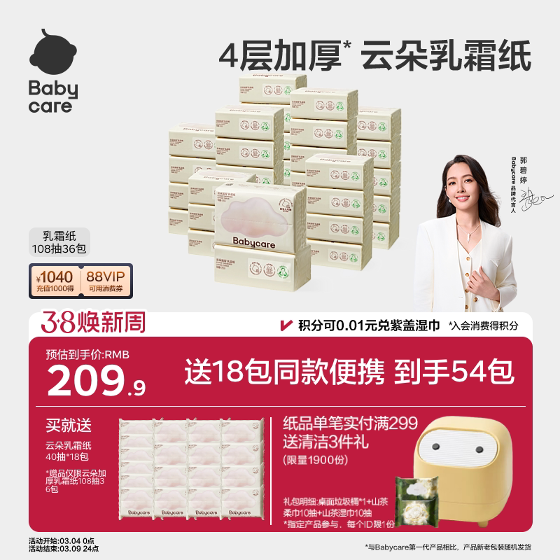 babycare云朵乳霜纸婴儿专用云柔纸巾宝宝专用柔肤卫生抽纸家用