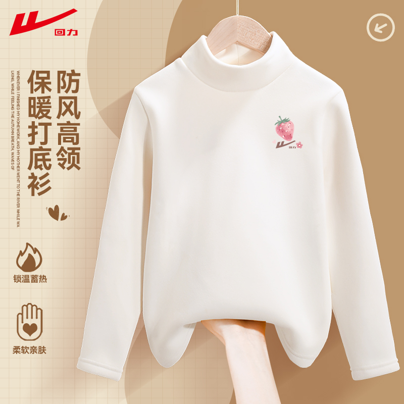 回力儿童加绒打底衫女童加厚内搭小学生半高领保暖衣男童新款冬装