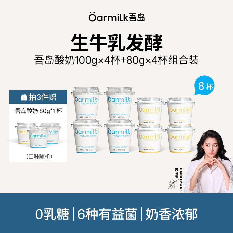 【拍3加赠】Oarmilk吾岛无蔗糖酸奶8杯迷你装低糖0乳糖酸奶
