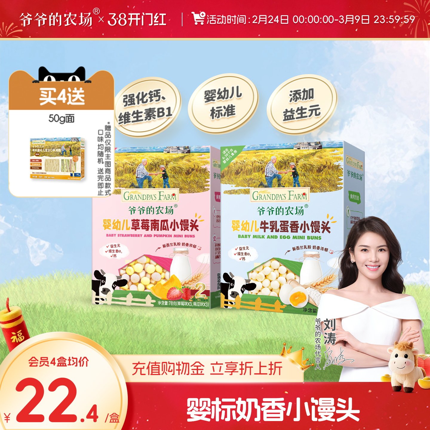 爷爷的农场婴幼儿小馒头无添加蔗糖儿童奶豆溶豆6月+宝宝辅食零食