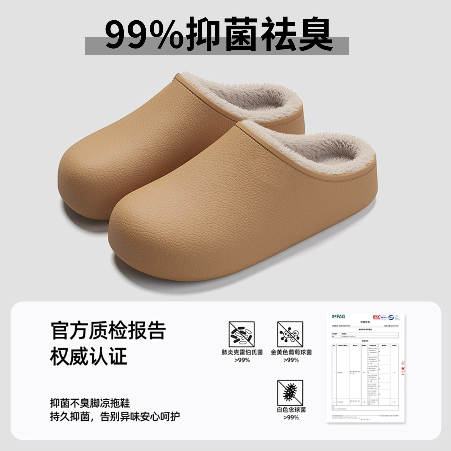 稻草人踩屎感棉拖鞋女士2025冬季防水防滑厚底加绒保暖棉鞋外穿男