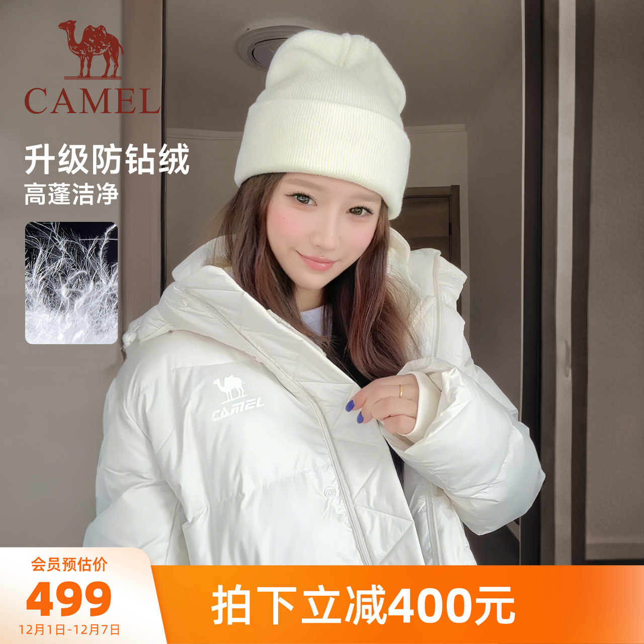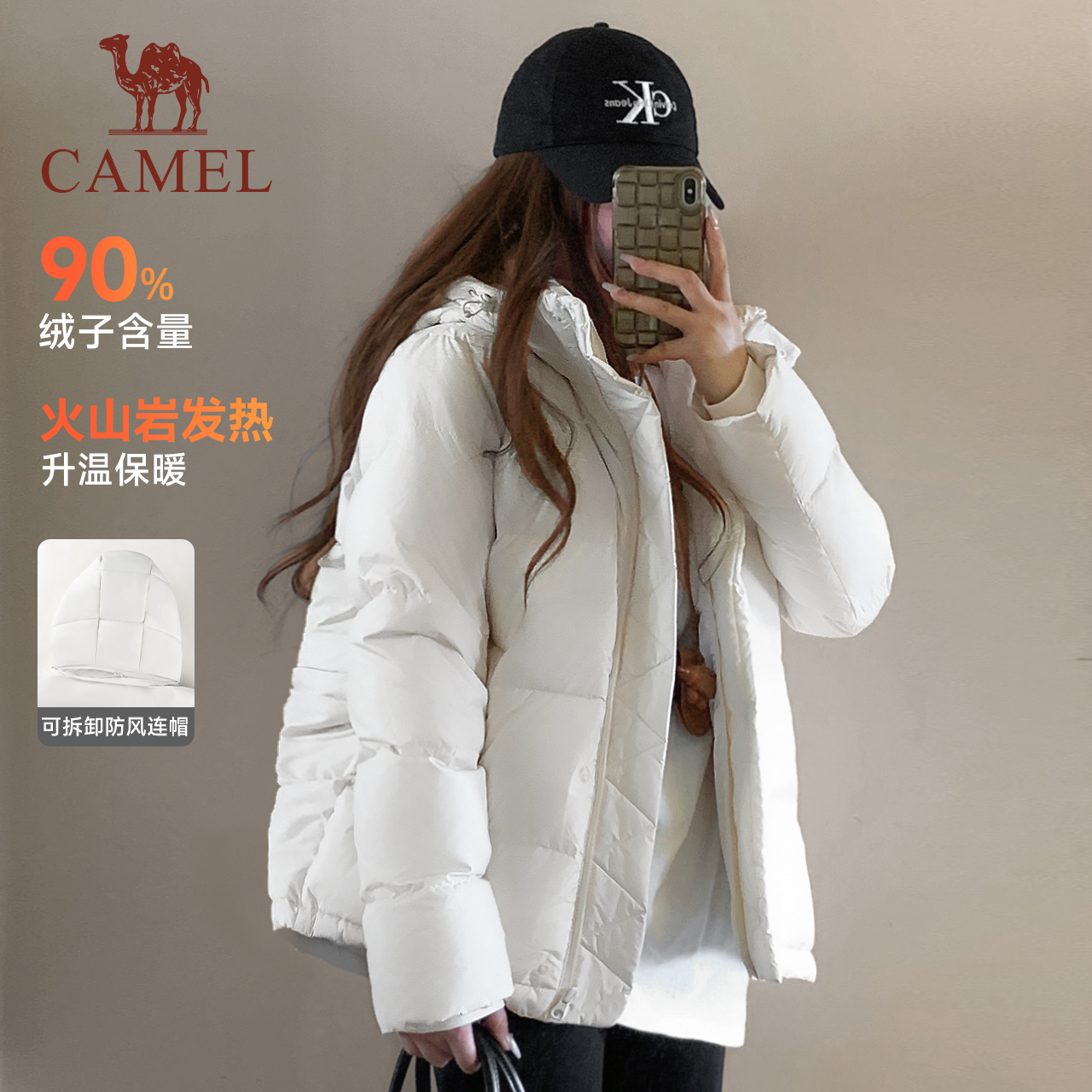骆驼泡芙羽绒服女冬季鸭绒加厚防风连帽外套保暖小个子短款面包服