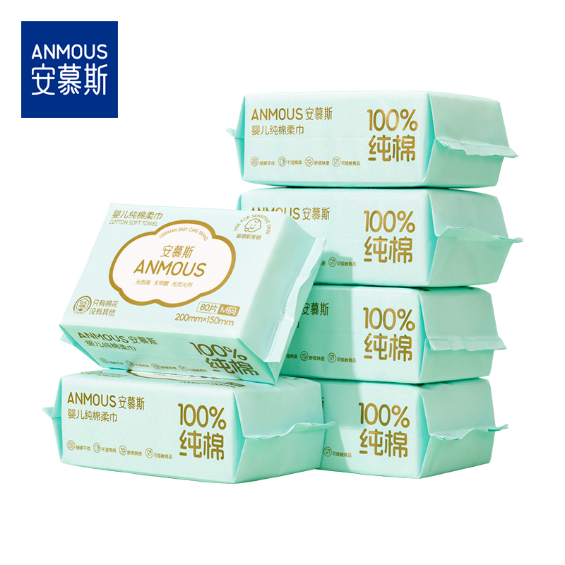 安慕斯婴儿100%棉柔巾一次性洗脸巾全棉洁面巾擦脸巾加厚纸巾80*6
