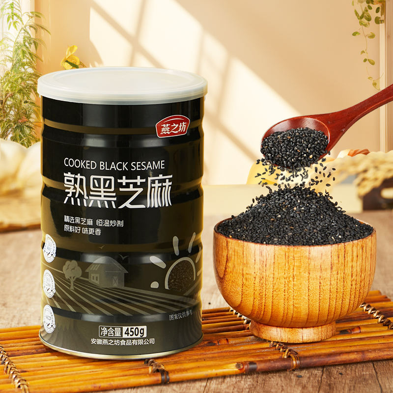 燕之坊_熟黑芝麻450g五谷杂粮免洗即食干吃芝麻粒可磨粉炒家用