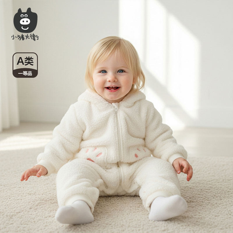 小猪大卫ins风可爱耳朵连体衣秋冬毛绒婴幼儿爬服保暖居家外出服