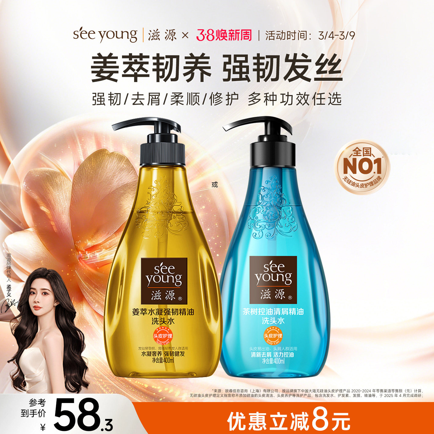 滋源无硅油生姜精油洗发水控油蓬松去屑柔顺露男女士旗舰店官网