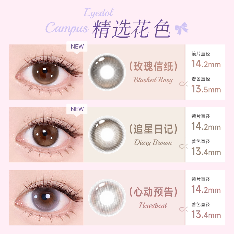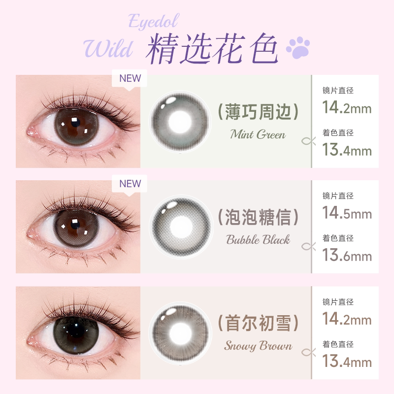 花色促销 人鱼姬美瞳半年抛1片彩色隐形眼镜无锁边大直径漉漉奶栗