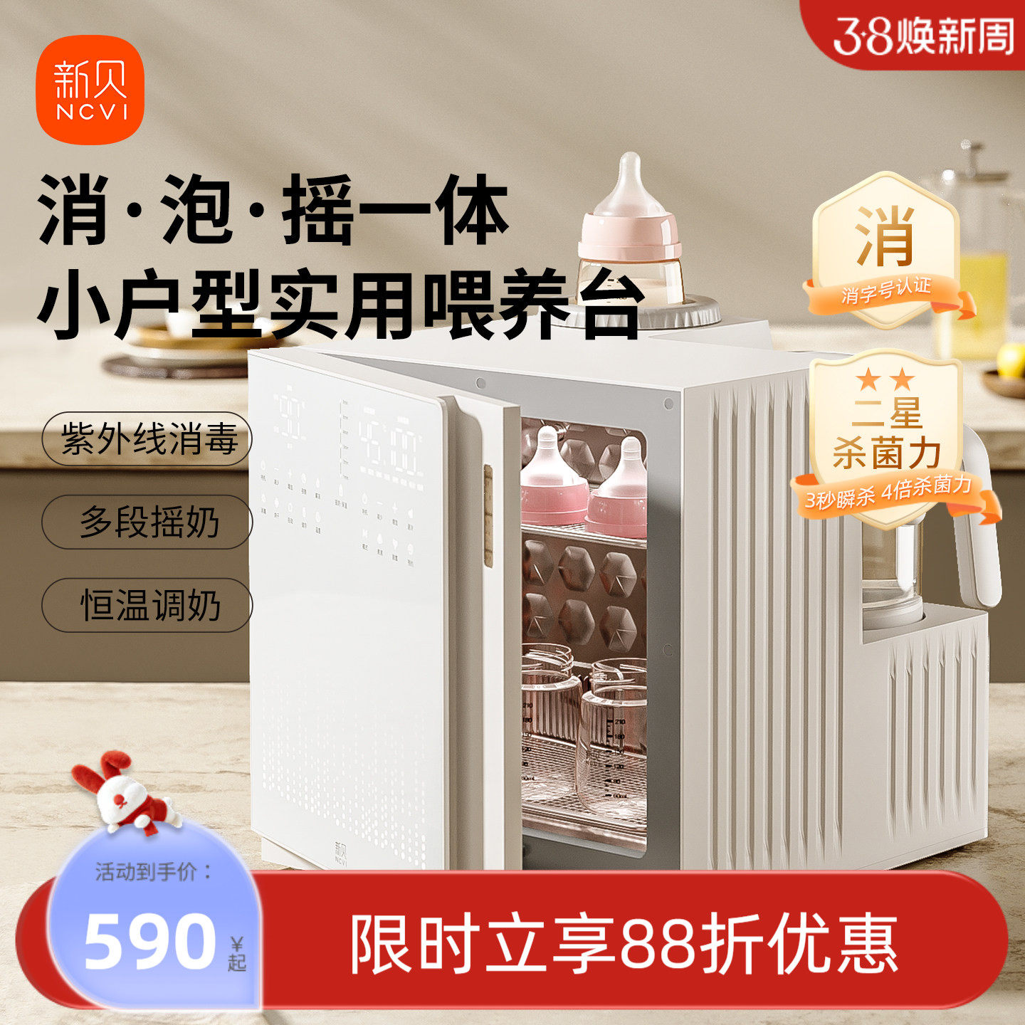【直播】新贝三合一喂养台恒温壶奶瓶消毒柜摇奶器带烘干婴儿专用