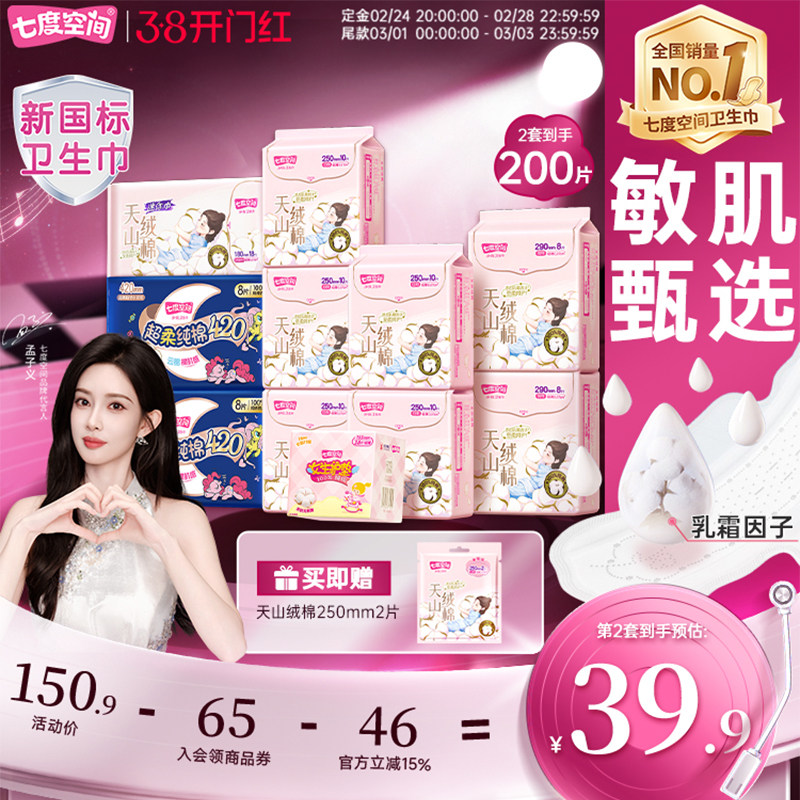 【新国标认证】七度空间天山绒棉100%纯棉卫生巾日夜姨妈巾薄官网