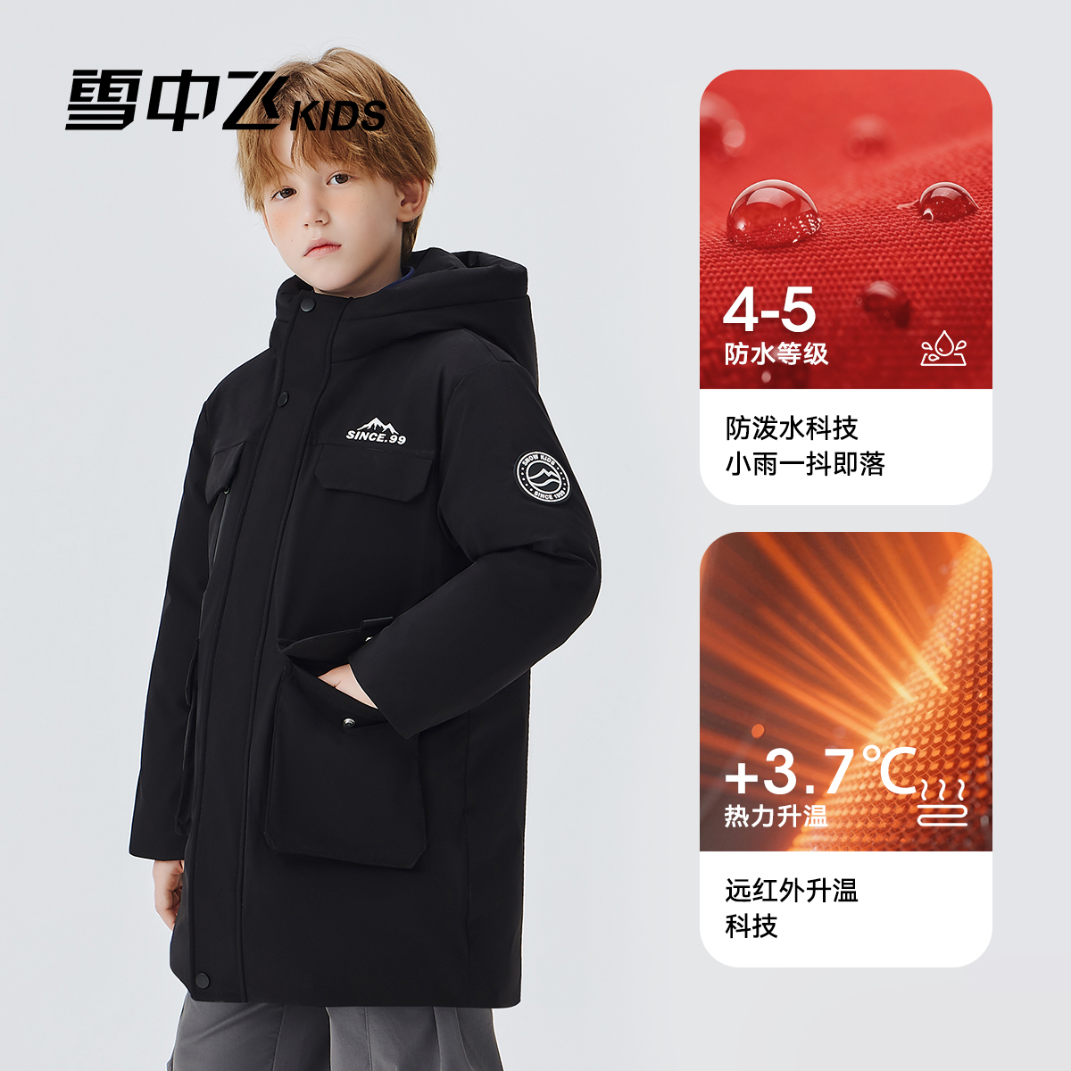 【远红外】雪中飞kids儿童羽绒服男童冬季女童加厚中长款保暖外套