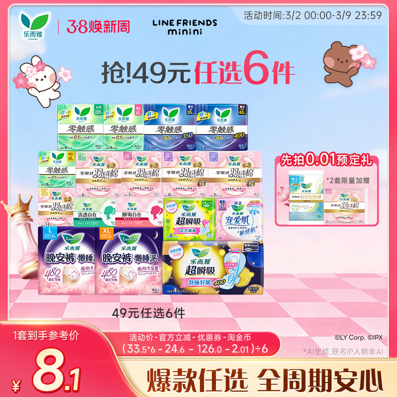 【49元任选6件】花王乐而雅零触感特薄日夜用卫生巾姨妈晚安睡裤